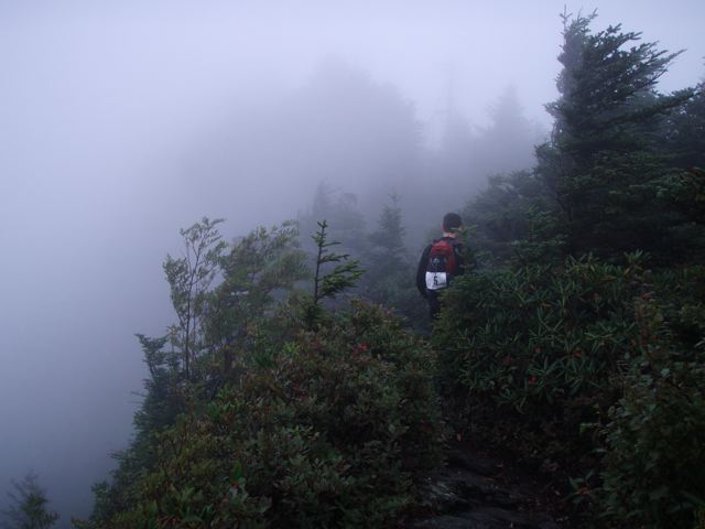 The alarms sounded at 5:15 and we were up shortly thereafter. We were on task and in the car by 6am to head to the start, which was the same as last year: on top of Grandfather Mountain. However this time it looked much different. See for yourself:
